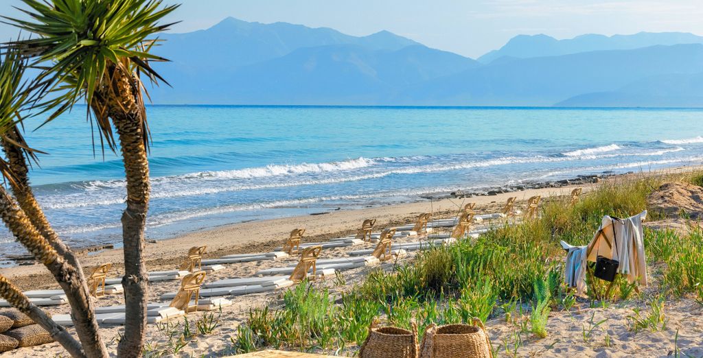 Paxos und Antipaxos liegen etwa 12 Kilometer südlich und lassen sich per Fähre in einer Stunde erreichen. Während Paxos mit seinem venezianischen Hafen und spektakulären Küstenhöhlen begeistert, bietet Antipaxos karibisch anmutende Strände mit türkisfarbenem Wasser. Die albanische Küste mit der antiken Stätte Butrint und den Stränden um Ksamil erreicht man per Fähre von Korfu nach Saranda.