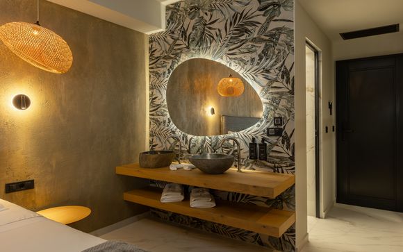 Das Superior Zimmer mit Aussen-Whirlpool, ist perfekt für alle, die einen unvergesslichen Aufenthalt auf Santorini verbringen möchten. Die moderne Einrichtung mit traditionellen Materialien lädt Sie zum Entspannen ein. Geniessen Sie die frische Aussenluft auf Ihrem privaten Balkon mit Whirlpool und Sonnenliegen.