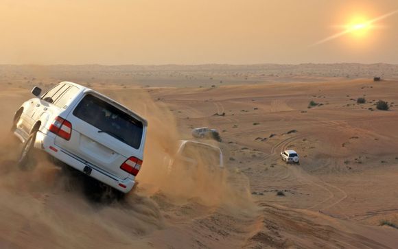 Erleben Sie einen unvergesslichen Abend an einem Ort fernab der Hektik der Stadt und nehmen Sie an einer Safari mit dem Geländewagen durch die Dünen der Arabischen Wüste teil, gefolgt von einem Grillabendessen und einer lebhaften Party!